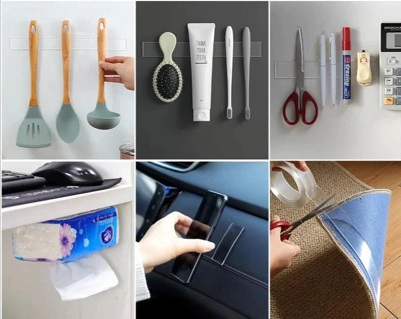 - La Cinta Mágica Adhesiva se puede utilizar de muchas formas. puedes colgar cualquier cosa en paredes y el piso. Además, esta Cinta se puede lavar muchas veces para poder reutilizarla.